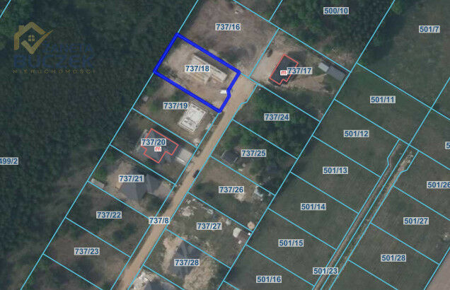 Działka jest o pow. 999 m2. Do tylnej strony działki przylega las. Nieruchomość znajduje się w cichej, spokojnej okolicy na nowo powstałym osiedlu domów jednorodzinnych. W pobliżu znajduje się DK50, dzięki której można szybko dojechać do miasta.